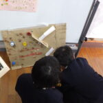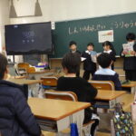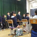 1年生が、令和8年度入学予定の新入生を迎えて、交流会を行いました。1年生は、新入生に喜んでもらおうと、遊び道具や使い方の説明を準備・練習しました。次に、1年生教室では、春からの小学校生活について1年生が班に分かれて発表しました。最後には、新入生全員が感想を発表し、交流会が楽しかったことが伝わってきました。4月からの入学を待っていますよ。