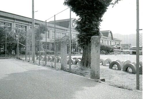 運動場西側にある玉水小学校当時のものと言われる門柱